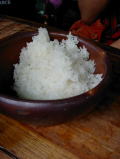 (上の続き)タイ人は美味しいものしか口にしないワガママな民族である。でもそのワガママが有ったために近隣諸国よりも料理がこの地域では発達したのである。ガイトート、ソムタム、カオニィアオ。どれもイサーン地方を代表するような料理であるが、貧しいと呼ばれるこの地域でも見事に料理は発達していった。 そして「タイ料理の美味しい店=タイ人の沢山いるところ」である。チャトチャック市場の一角に食事時でも無い時間(16:00)なのにタイ人や外国人で常に満席状態の店があった。ここで食べた上記3品。確かに美味い。他の店で食べる同じ料理は全く違った印象を受けた。タイ人どころが西洋人までもが「美味しい美味しい」と言って食べているのに私も納得。(7月6日) |