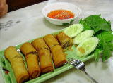 「春巻」は広東語で「チョンギュン」。昔、立春に「春餅」という生地で春野菜を包んで一緒に食べる習慣があり、それが春巻きに発展したという説がある。 「ポピア」というタイ語は中国からの外来タイ語である。おそらく中国の地方言葉であろうか。 タイに春巻は言葉と共に入ってきたようである。 「トート」はタイ語で揚げる。揚げていない春巻は「ポピア・ソット」という(ソットは火が通っていないと言う意味)。 但しベトナムのライスペーパーを使った生春巻とはちょっと違う。(10月9日) |