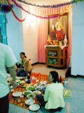 同じ職場のタイ人が、バンコク郊外に一軒家を新築した。新築価格にして、250万バーツ。 700万円ちょっとと、日本の感覚で聞けば安くも感じるが、タイではとても大きな買い物てある。 そこで、いわゆる落成式みたいなものがあり、ちょっとだけ顔を出してきた。床にござをしいて、そこに料理を並べて皆で取り囲む、いわゆるタイ・スタイルの食事会であった。 キッチンも、どちらかといえば西洋式のキッチンなのであるが、必ず置いてあるのが、タイ料理には欠かせないクロックとサーク。 →写真は、家の中に飾ってある、タイ建国の父、国王ラマ5世の肖像画である。 日本に言い換えると明治天皇陛下の写真を飾ってあるような感じであろうか。ラマ5世はタイ国民に今でも慕われている。(12月28日) |