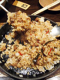 某大手の居酒屋チェーンのメニューで「アジアン焼き飯 ガパオ」というものがありました。 ちなみに、下段の写真がバンコクの屋台で撮影した「ガパオ」。 “アジアン焼き飯”という名前で、ジュージューの鉄板にのって、ビビンバのようにテーブル調理するのは、一見面白かったですが、「ガパオ????」というのが私の正直な感想。 味も、『初体験』の味でした。 「ガパオ」=「ホーリーバジル」。 この居酒屋の料理は、鶏肉のそぼろとピーマンがひたすら甘い調味料で炒めてあるもの(+生黄身)。 ・・・ガパオではないですよね。 名前だけ「ガパオ」で、ガパオもバジルも入っていませんでした。 ちょっとガッカリ。 でも、これもまた、仕方がないのでしょうか… |